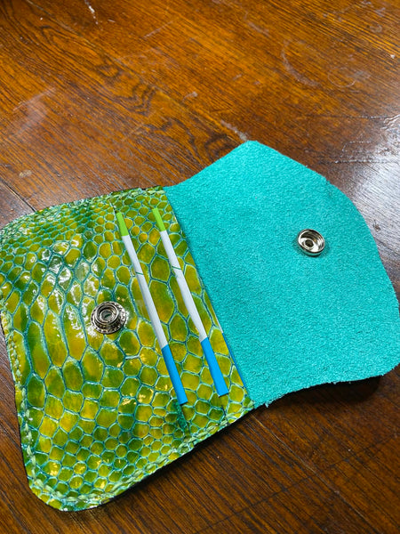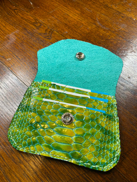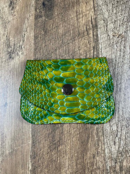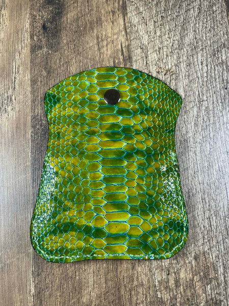A compact statement piece with a luxurious feel. This handmade crocodile‑embossed patent leather wallet brings together bold texture, glossy shine, and everyday practicality in a perfectly pocket‑sized design.