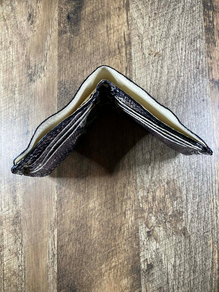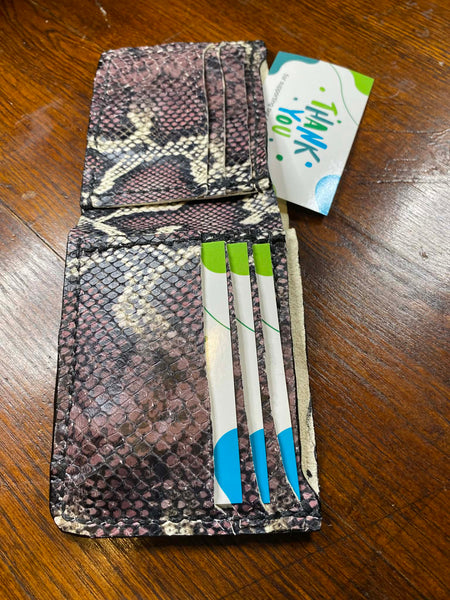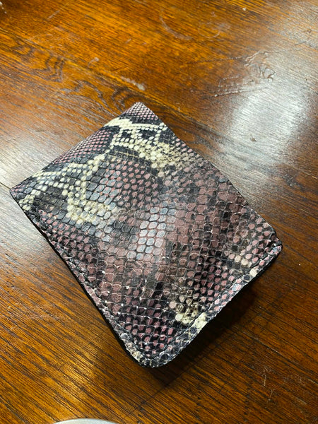 Bold, compact, and beautifully crafted — this handmade bifold wallet features a striking purple snake‑embossed leather that brings texture and personality to an everyday essential. Slim in the pocket yet full of function, it’s designed for anyone who loves a standout accessory with artisan quality.